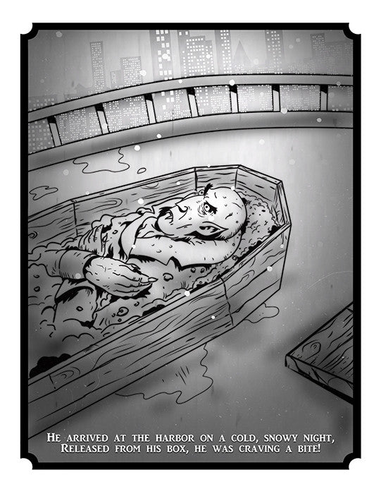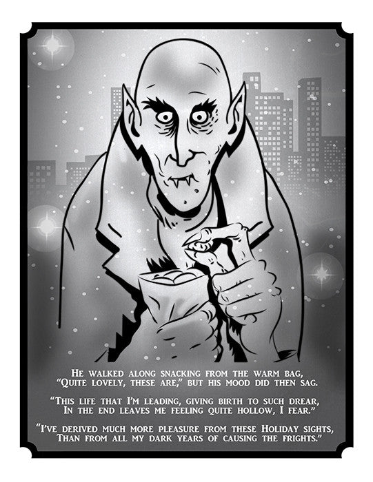 Nosferatu's Christmas In New York. A Warm tale For Cold, Undead Hearts. Christmas time in New York is magical, everyone knows that. Maybe that's why Nosferatu picked this time of the year to visit. The story is told in 21 pages of grey scale art which can be enjoyed as is or used as coloring pages. The images are printed one-sided so as to prevent markers from bleeding onto the next image.