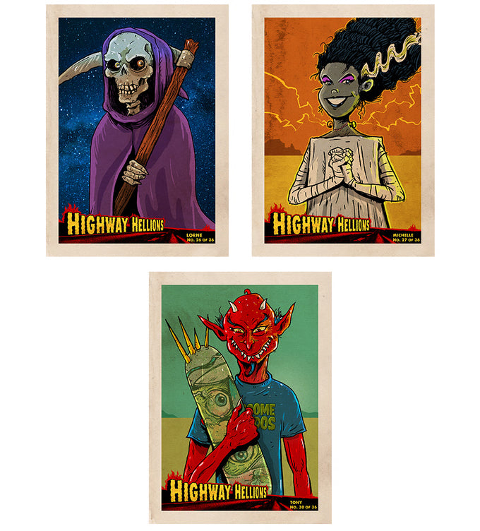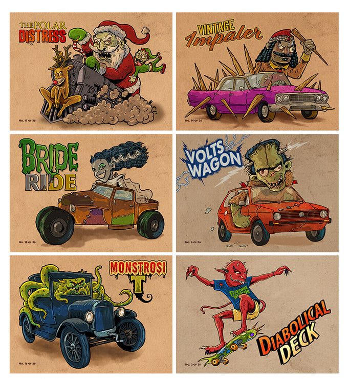 The 36 card set is made up of 24 Vile Vehicles, and Highway Hellions, a subset featuring portraits of 12 of the drivers.
